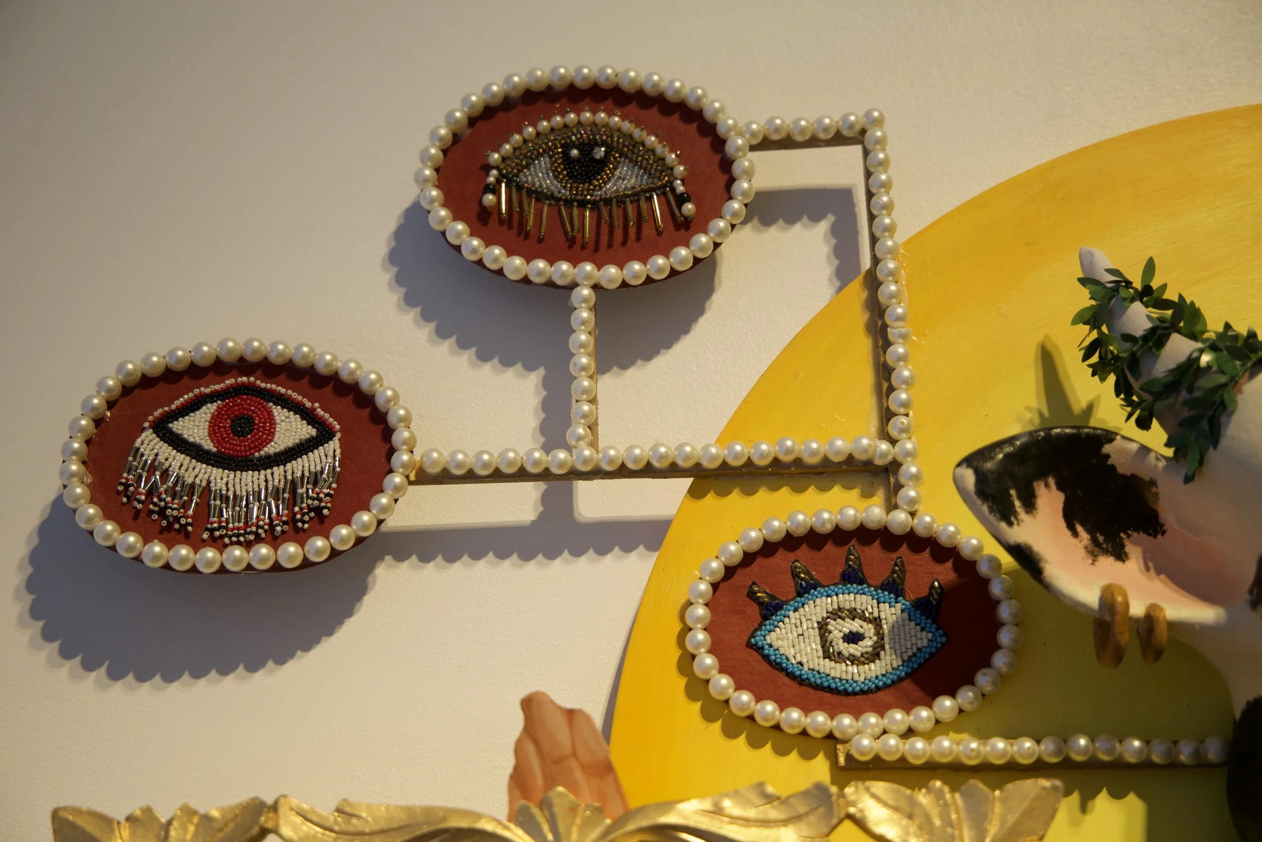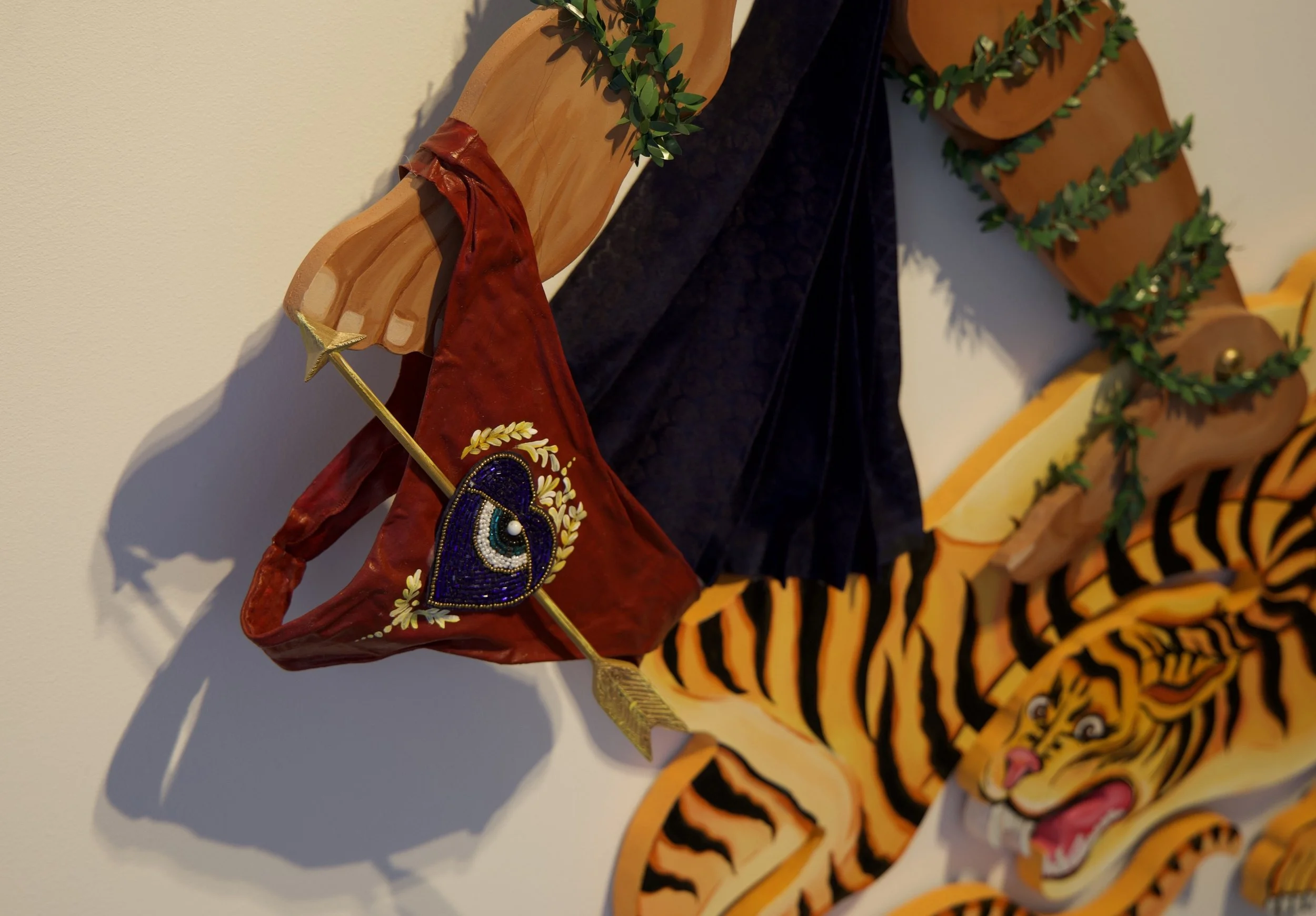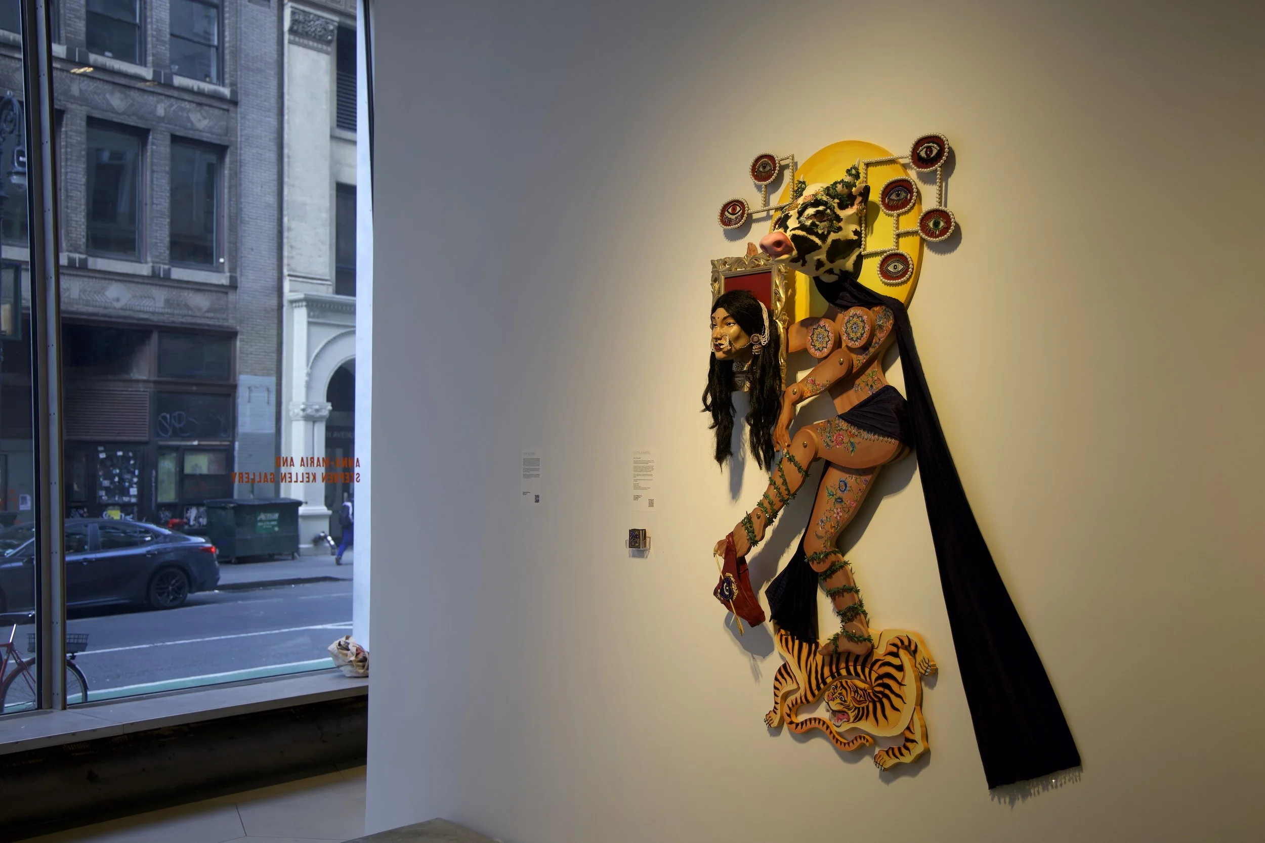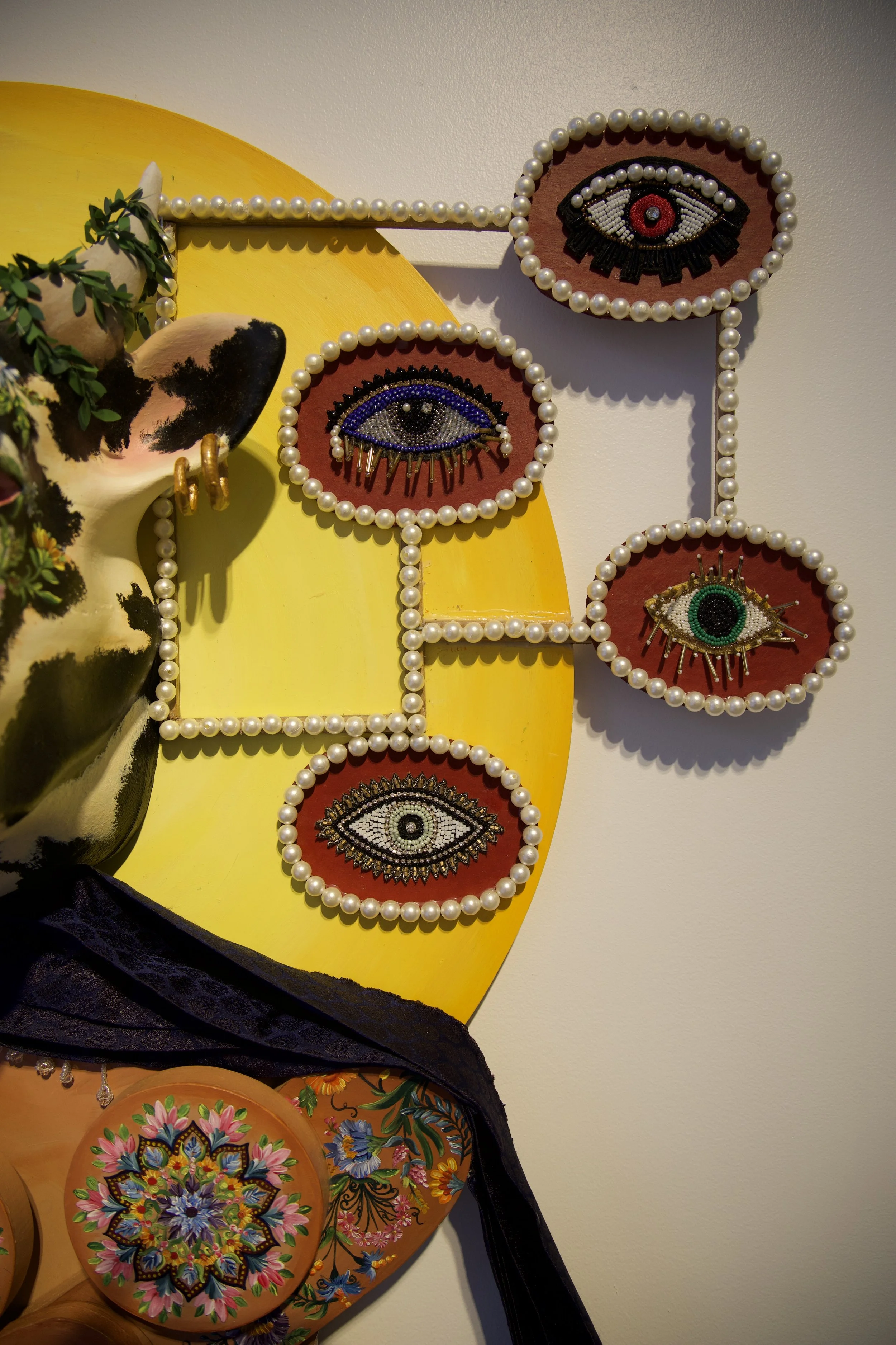 Her crown held many eyes—society always watching. From it hung a piece of underwear, heavy with shame she never chose. But still, she stood tall.
