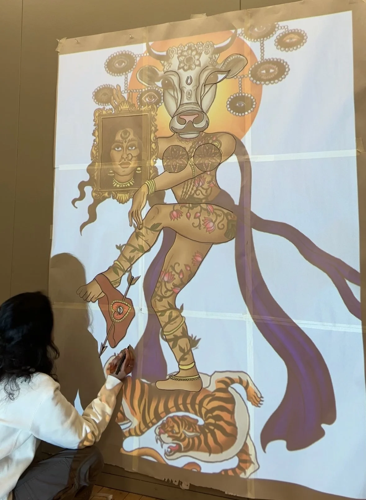 She stood still, in the pose of Nataraj—the cosmic dancer of destruction and rebirth. In her hands, she held a frame with her own head, a sign that she saw herself clearly, despite everything. Resting on her shoulders was the head of a cow, worshipped as Gau Mata. It was a quiet irony—how easily reverence skipped over women and landed on beasts.